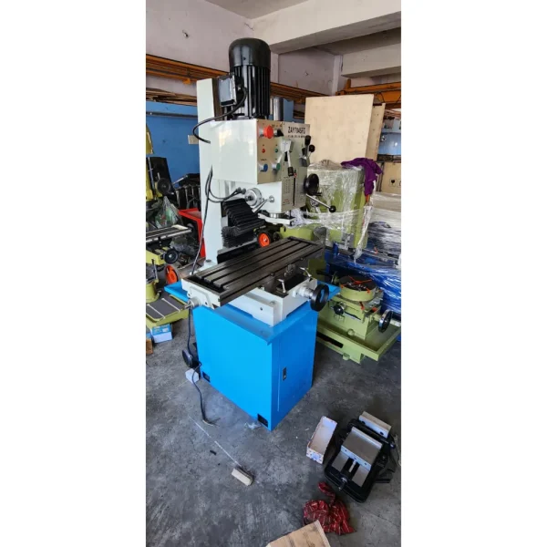 A:- It comes with an adjustable gear-driven speed system, providing multiple spindle speeds (usually 75–1600 RPM) to suit different drilling and milling operations.